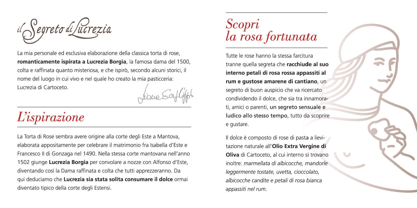 Esistono ricette che sono semplici elenchi di ingredienti e ricette che sono veri e propri spartiti sensoriali. Il Segreto di Lucrezia, la creazione firma di Liana Serfilippi, appartiene a quest’ultima categoria. Nato come un omaggio raffinato alla figura storica di Lucrezia Borgia, questo dolce non è solo il simbolo della nostra pasticceria, ma un viaggio nel tempo e nei sapori del nostro territorio.